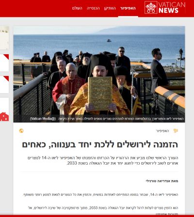 הוא הזמין נוצרים לעלות לרגל לקראת יובל הגאולה בשנת 2033, מתוך פרספקטיבה של שיבה לירושלים, אל מקורות אמונתנו.